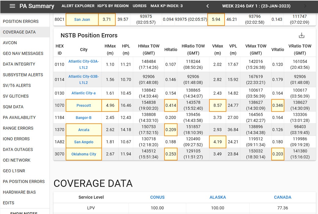- Monitoring the performance of GPS, WAAS, and other GNSS using metrics based on accuracy, availability, coverage, and range accuracy, among others, to ensure the safety of the satellite navigation network as part of the National Airspace System (NAS).